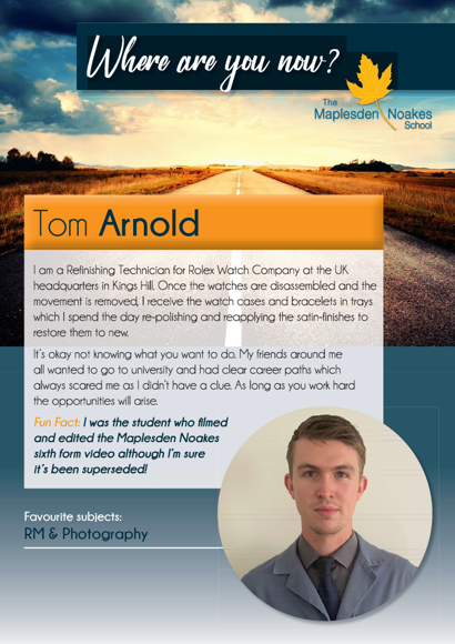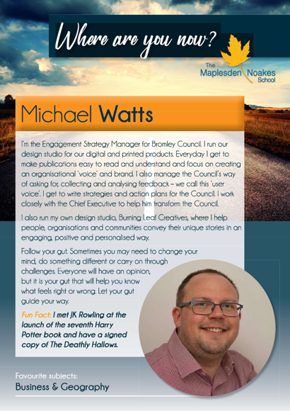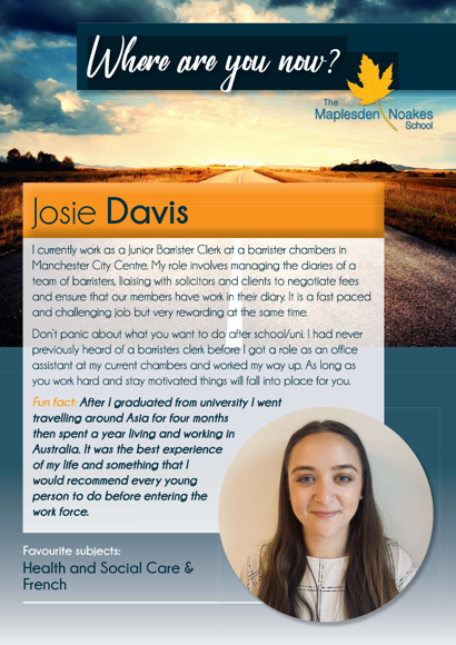 The Maplesden Noakes School Alumni is a valued and integral group of ex-students who regularly participate and support the school's careers programme.